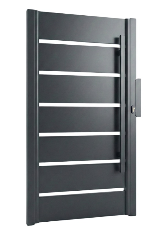 Furtka stalowa z wypełnieniem - sztachety zamknięte | Nowoczesny wzór, dwustronny wygląd
